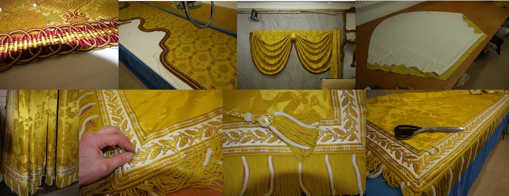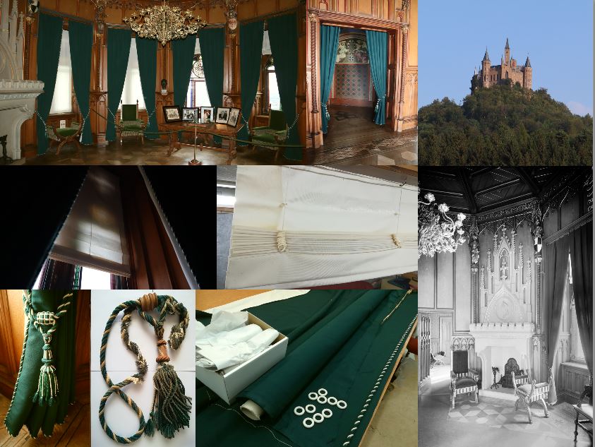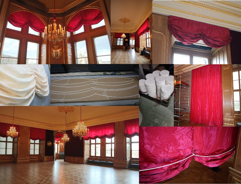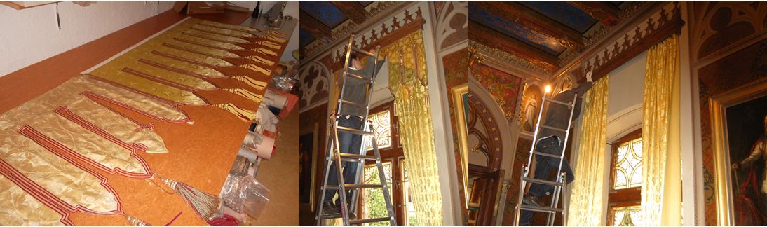 Rekonstruktion der Aufziehvorhänge nach Inventar und historischen Fotos.