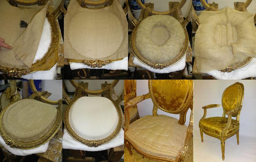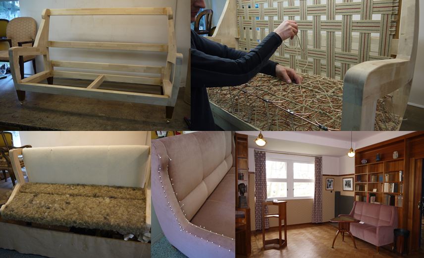 Wir rekonstruieren Polsterungen. Dabei wird die Polsterung in der entsprechenden Technik, passend zur Herstellungszeit des Möbels gearbeitet.